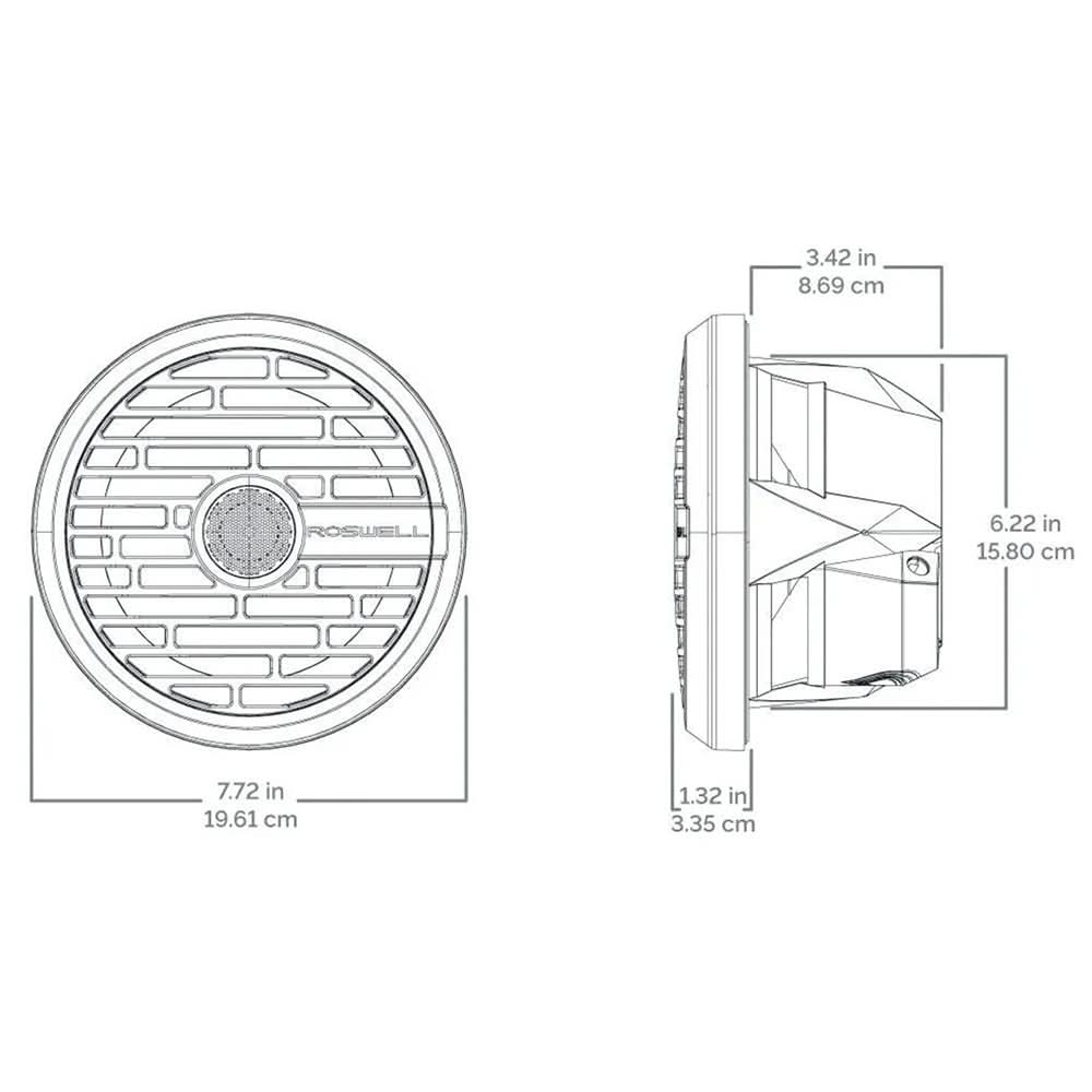 Roswell R1 7.7″ Marine Speakers answer the call for clarity and bring a signature sound to every waterway. Defining a culture of acoustic perfection, Roswell R1 Audio has become a catalyst for new experiences, celebrated by those who demand the best. Breaking barriers to delivering R1 Audio in any application, the R1 7.7′′ was developed to ensure everyone discovers a place where imagination meets sound.