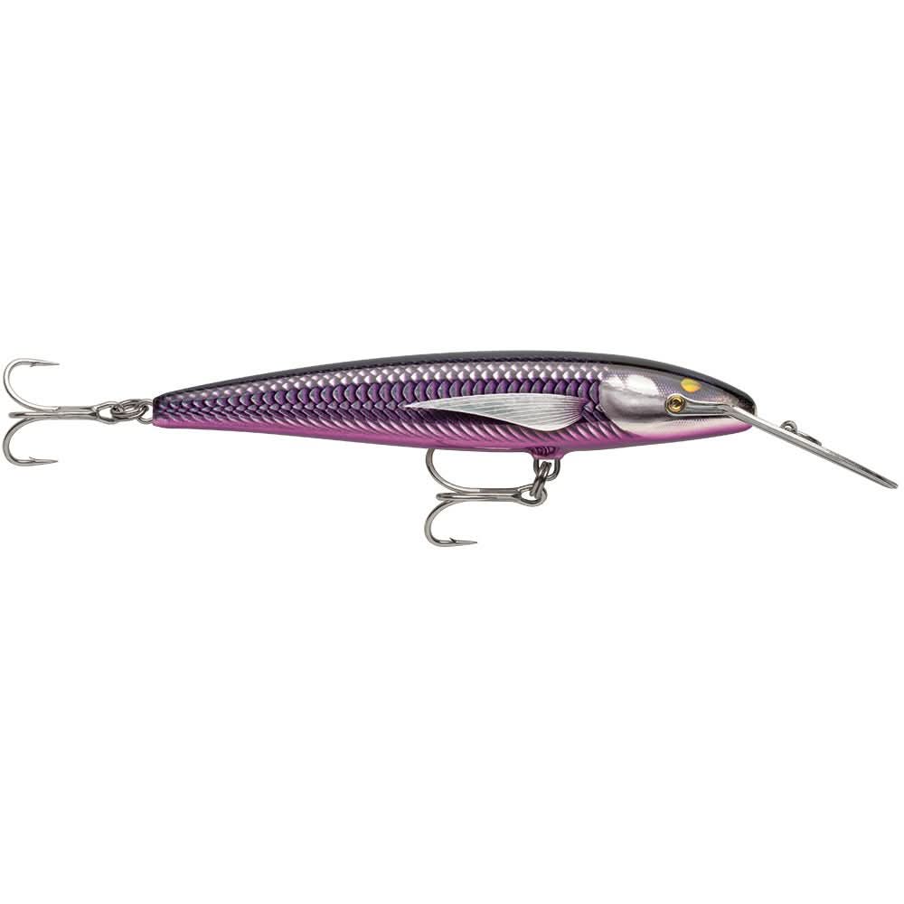 The Rapala CountDown Magnum Elite 145 is a high-performance saltwater lure designed for targeting powerful predator species. Built with a durable Abachi wood body, this lure delivers exceptional strength and resilience, making it ideal for heavy-duty fishing applications. Its classic Wounded-Minnow action, renowned for attracting a wide range of fish, remains consistent even at higher speeds, whether cast or trolled. The sleek, sinking anti-broach design ensures that the lure stays submerged at a consistent depth, ranging from 15 to 18 feet, giving anglers precise control during their fishing sessions. Equipped with premium 3X VMC ultra-sharp saltwater hooks, heavy-duty split rings, and a durable finish, this lure is engineered to withstand the rigors of saltwater environments and aggressive strikes from large fish. Its striking armored purple mackerel coloration enhances visibility in various water conditions, increasing your chances of a successful catch. Whether you're targeting species like mackerel, kingfish, or other large saltwater predators, the CountDown Magnum Elite 145 offers reliable performance, versatility, and durability. Perfect for anglers seeking a dependable lure that combines rugged construction with proven action, it is a valuable addition to any saltwater tackle box. This product is designed to perform at high speeds, ensuring versatility whether for casting or trolling. With its robust construction and proven fish-attracting action, the Rapala CountDown Magnum Elite 145 is a top choice for serious saltwater anglers.