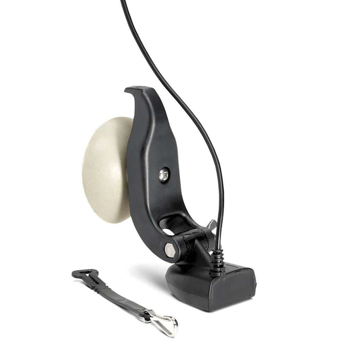 Portable Dual Spectrum CHIRP Transducer supports Dual Spectrum CHIRP 2D Sonar with high frequency beam and wide cone angle, offering CHIRP range of 150-220kHz and max depth of 1200ft. Suction cup mount adheres to smooth surface hulls for easy installation. Includes all required mounting hardware, built-in temperature sensor and 20’ cable. Not recommended for high speeds.
